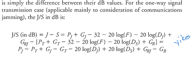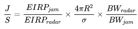 In words, this equation says that the ratio of the jamming strength to the "true" signal strength (J/S) is equal to: