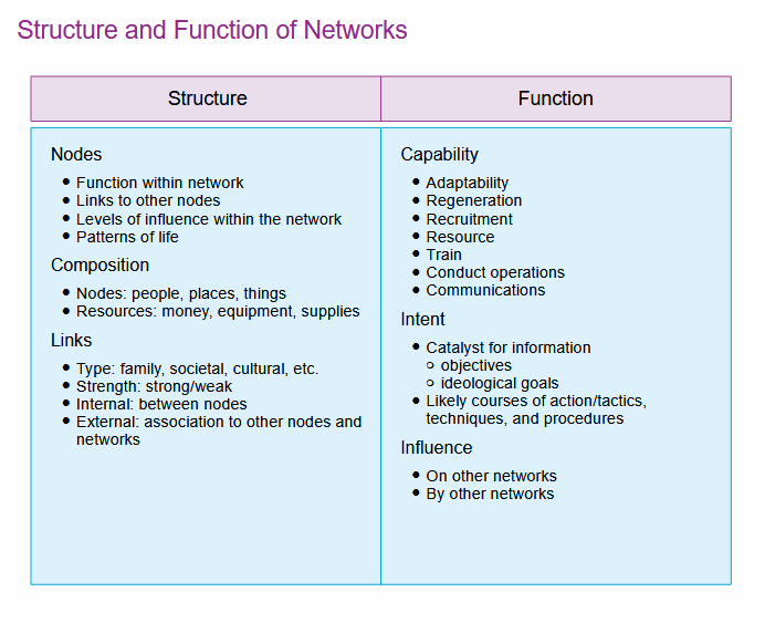 JP 3-25, Countering Threat Networks notes on page II-7 that